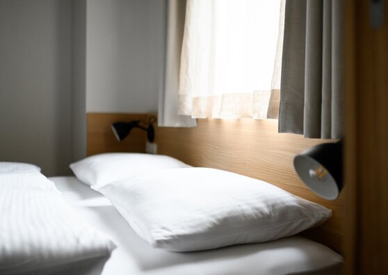 - Doppelbett (180x200) oder 2 Einzelbetten mit hochwertigen Simmons-Matratzen Baumwollbettwäsche, allergikerfreundliche Kopfkissen und Bettdecke