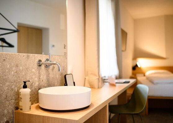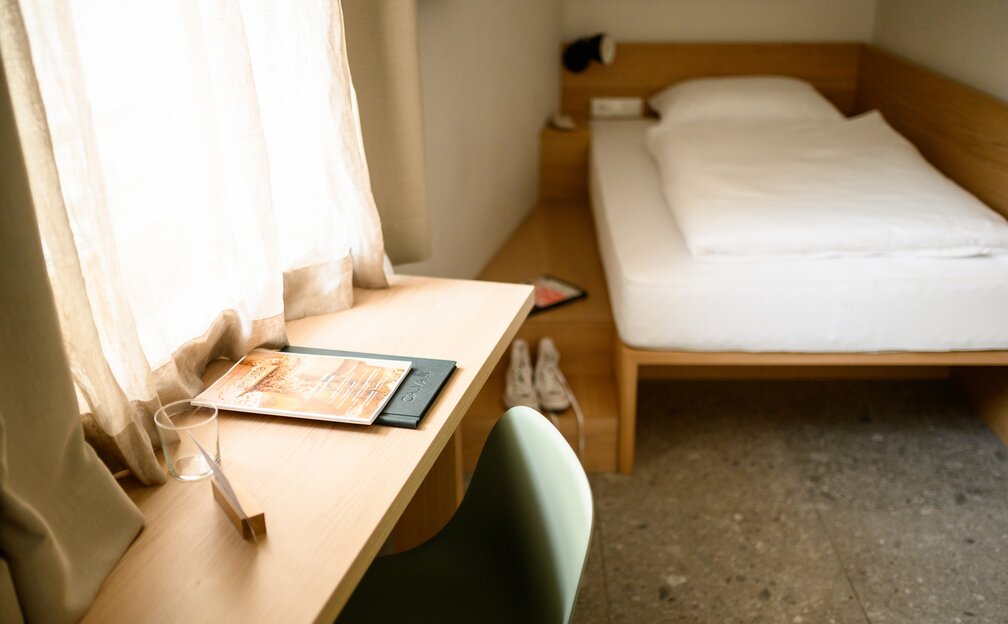 Klein, aber fein. Unsere Einzelzimmer sind die perfekte Bleibe für eine Person auf 10 m². Das 120 cm breite Bett befindet sich in der kuscheligen Schlafkoje. Das Frühstück kann jederzeit dazugebucht werden (außer dienstags). Funktional mit gemütlichen Details mit dem echten Wohlfühlfaktor in behaglichem Ambiente.