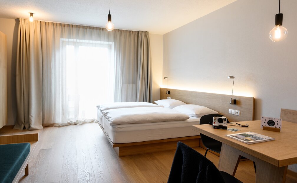 Im Studio-Apartment auf 25-30 m² für 1 bis 3 Personen wird geradliniges Design mit Gemütlichkeit kombiniert. Ob zum Südtirol erkunden oder fürs Business. Frühstücken Sie im Apartment oder auf der Terrasse oder in der Bar im Calva. Das servierte Frühstück ist jederzeit zubuchbar.